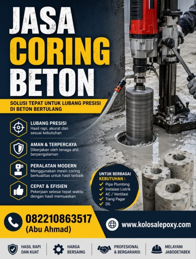 Berapa harga pekerjaan coring lantai beton yang kami kerjakan? Perusahaan kami menawarkan jasa coring lantai beton dengan harga pertitik yang cukup beragam tergantung seberapa besar diameter lubang yang akan anda buat, jumlahnya sesuai dengan titik yang dibutuhkan, ketebalan beton yang dilubangi, serta tipe mesin coring yang digunakan. Anda dapat langsung menghubungi customer service kami untuk informasi lebih lengkap mengenai jasa kami. Dan Kami pun menerima Jasa cutting Concrete.
