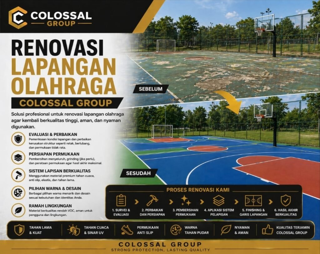 Tahapan Renovasi Lapangan Olahraga Dengan Finishing Flexi Pave Coating